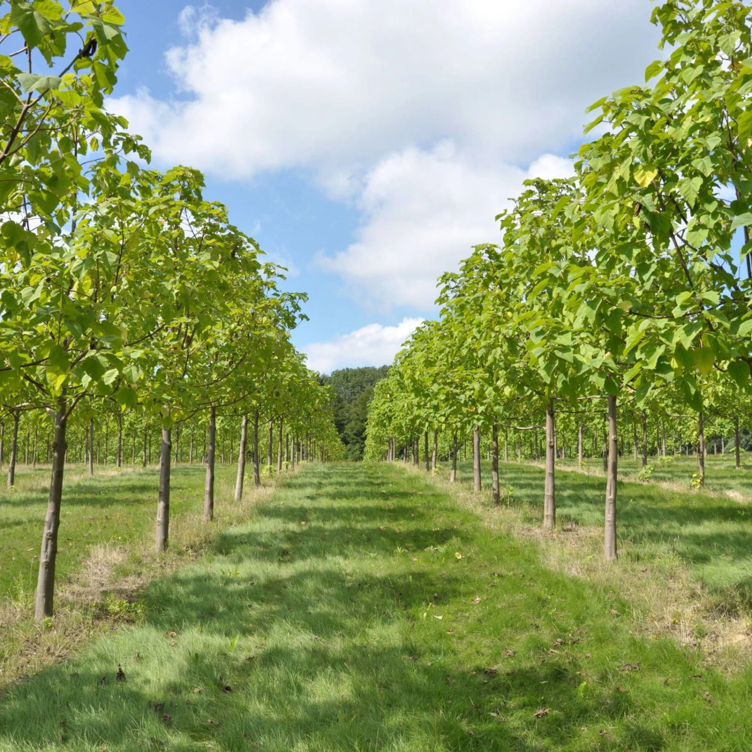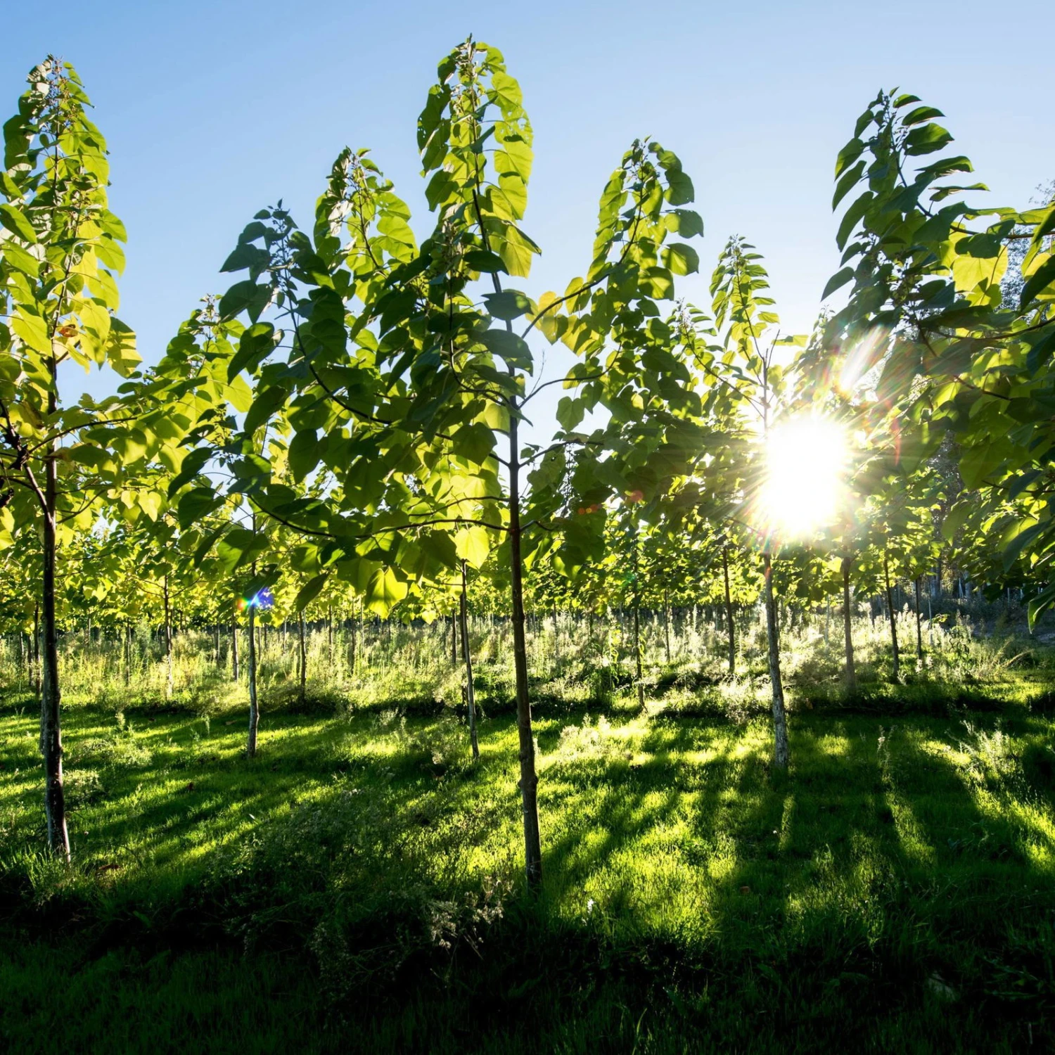 Der trockenheits– und hitzeresistente Blu CO2-Klimabaum ist der schnellst wachsende Hochstamm Europas und kann dadurch viermal so viel klimaschädliches CO2 aufnehmen wie Buchen oder Eichen. Er kann so auch innerhalb weniger Jahre schon als Schattenbaum genutzt werden. Die Züchtung ‘NordMax21‘ ® ist eine „nicht invasive Art“, das bedeutet, er vermehrt sich nicht unkontrolliert. Ist er zu groß geworden, kann er problemlos auf Höhe der Grasnarbe abgesägt werden. Er treibt anschließend aus und wächst erneut zu einem vollständigen Baum heran. Das Holz hat eine wunderschöne Maserung, ist extrem leicht und trotzdem stabil und sehr witterungsbeständig. Es kann z.B. zu Hochbeeten (ohne Erdkontakt), Bänken oder Nistkästen verbaut werden. Er ist frosthart bis -20°C.‘NordMax21‘ ist eine geschützte Sorte. Die Vermehrung ist verboten.
