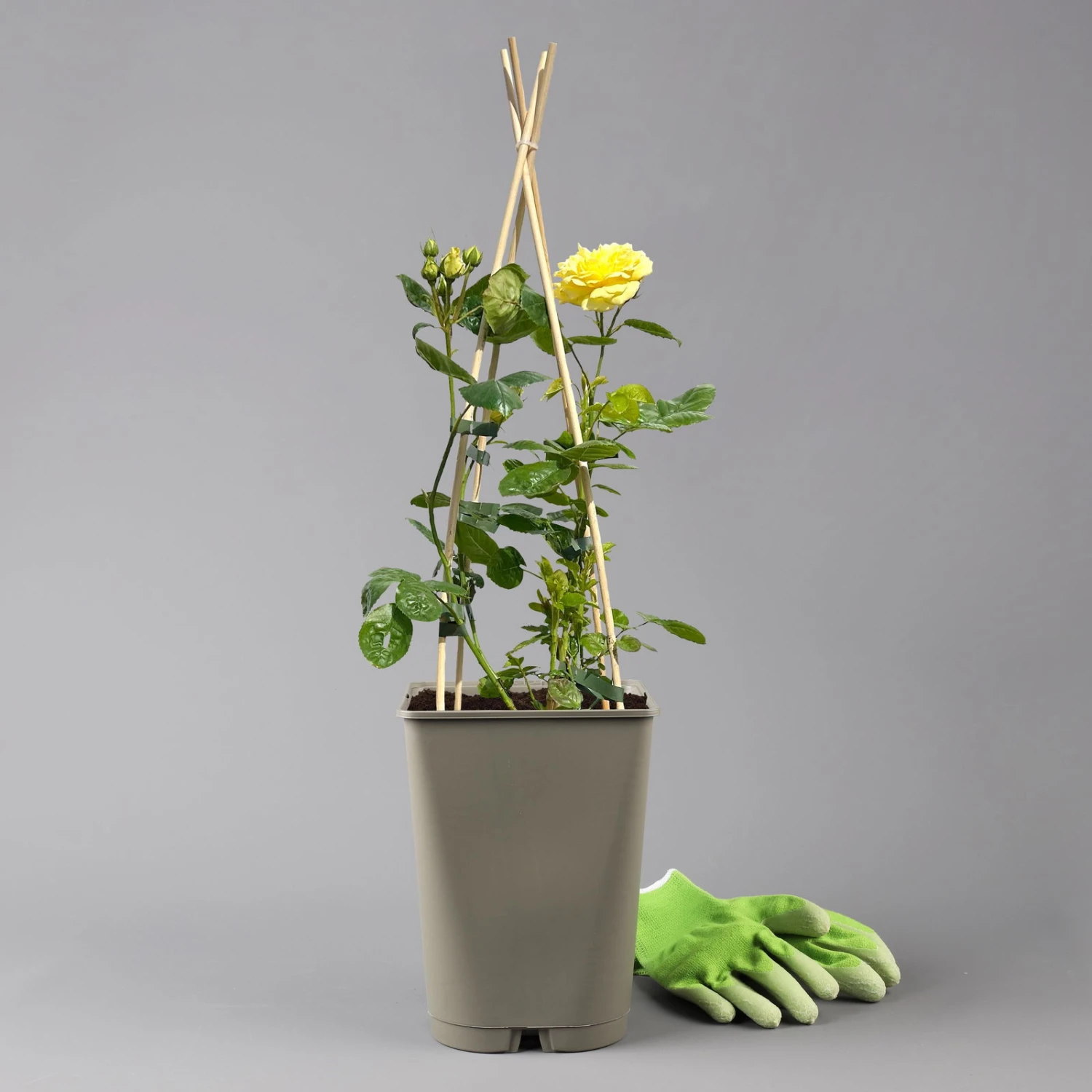 Duftende Beetrose ‚Yellow Meilove®‘, Hellgelb, Topf 6 Liter