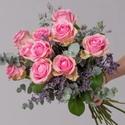 Blumenbund Rose ‚Memory Lane‘, Eukalyptus Und Kapgrün, Mit Gratis Grußkarte