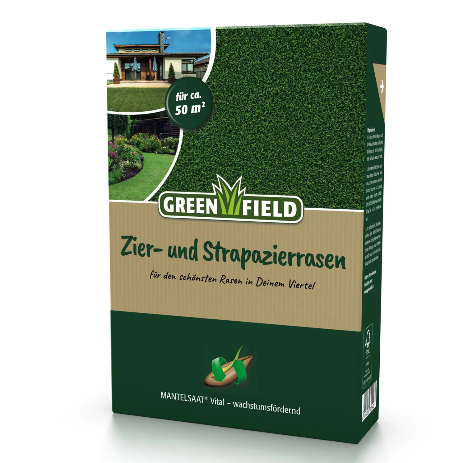 Für stark beanspruchte Rasenflächen ist die hochwertige Rasensamenmischung ‚Greenfield Zier+’® Mantelsaat Vital genau die richtige Idee. Diese Mischung aus zertifizierten, beliebten Grassamen erscheint in schickem Dunkelgrün und überzeugt mit ihrer feinen, zugleich jedoch äußerst strapazierfähigen Grasnarbe.