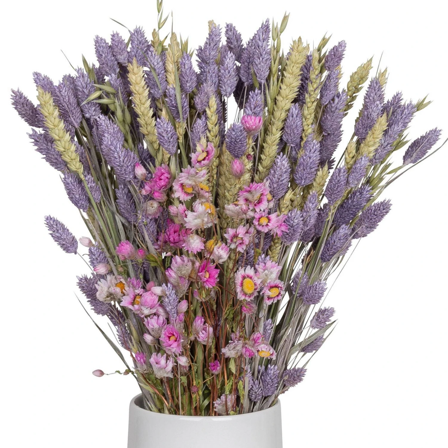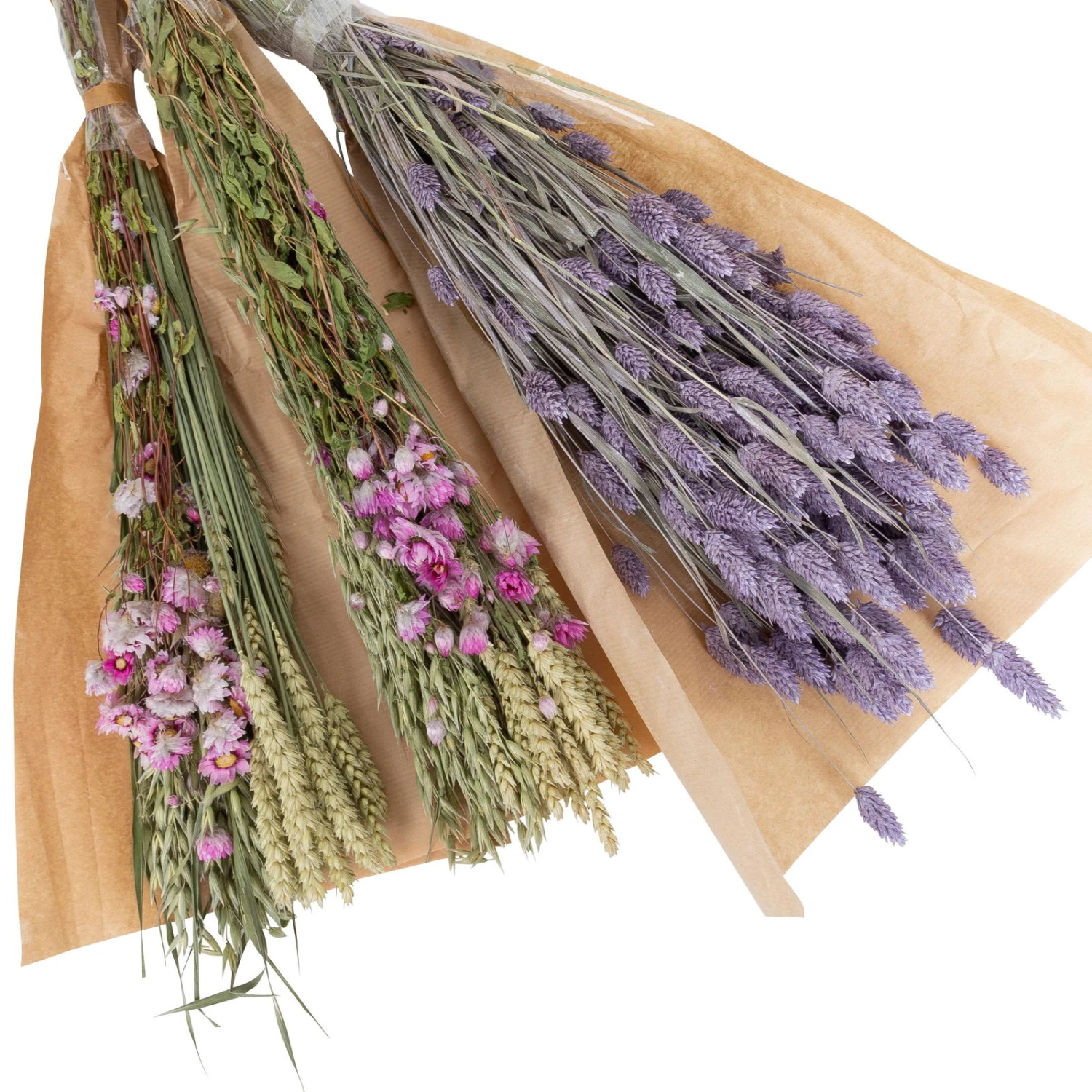 Rosa Trockenstrauß & Lila Glanzgras, 3er-Set, Länge Ca. 55 – 70 Cm